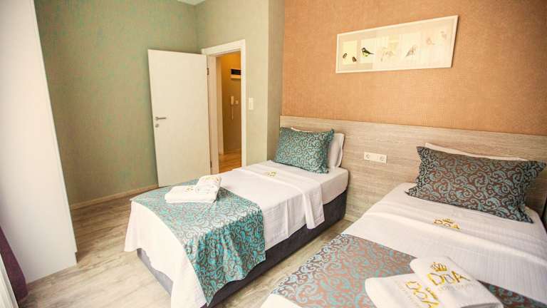 Die Zimmer im Doa Suite Hotel sind mit einem eigenen Bad ausgestattet, das eine Dusche sowie Hausschuhe und kostenfreie Pflegeprodukte bietet. Einige Zimmer verfügen über einen Sitzbereich, eine Terrasse oder einen Balkon. Zur Ausstattung gehören weiterhin ein Flachbild-TV, Schallisolierung und Klimaanlage. Bettwäsche und Handtücher werden nach den Richtlinien der örtlichen Behörden gewaschen.