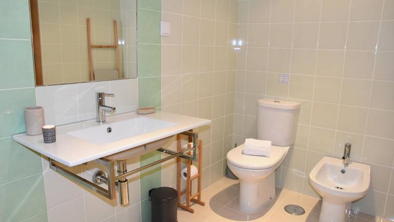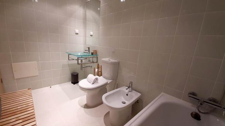 Die Ferienwohnung verfügt über Klimaanlage, einen Flachbild-TV sowie eine voll ausgestattete Küche mit Kühlschrank. Ein einladender Sitzbereich, eine Waschmaschine und zwei Badezimmer mit Bidet, Dusche und Badewanne sind ebenfalls vorhanden.