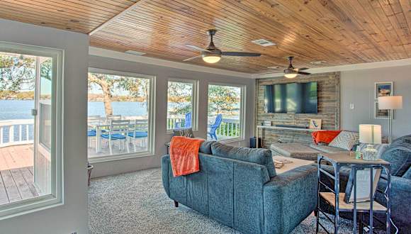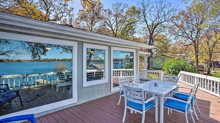 Dock and Fire Pit Lakefront Cedar Creek Home! bietet klimatisierte Übernachtungsmöglichkeiten mit herrlichem Seeblick. Es verfügt über eine Veranda/Pati, die zum Entspannen einlädt.
