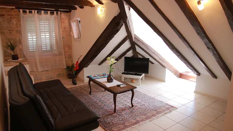 Die Dolce Vita Apartments befinden sich im historischen, UNESCO-geschützten Diokletianpalast im Zentrum von Split. Ein Lebensmittelgeschäft ist in unmittelbarer Nähe. Der Gemüse- und Fischmarkt ist nur 100 m entfernt. Die Einkaufsstrasse Marmontova liegt 250 m von der Unterkunft entfernt. Wichtige Sehenswürdigkeiten wie die Kathedrale des hl. Domnius sind in einer Entfernung von 100 m und der Waldpark Marjan, wo Picknickmöglichkeiten sowie Wander- und Radwege vorhanden sind, liegt 900 m entfernt. Der berühmte Strand Bačvice ist nach einem 15-minütigen Spaziergang erreichbar. Der Busbahnhof und der Fährhafen sind 500 m entfernt, der Flughafen Split liegt 22 km von der Unterkunft entfernt.