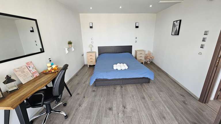 Die Ferienwohnung verfügt über ein Schlafzimmer, ein Wohnzimmer, einen Flachbild-TV sowie eine gut ausgestattete Küche mit Toaster. Das Badezimmer ist mit einer Dusche ausgestattet. Handtücher und Bettwäsche werden zur Verfügung gestellt. Eine Terrasse und eine Klimaanlage sind ebenfalls vorhanden.