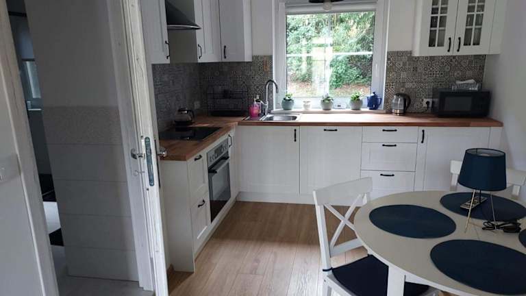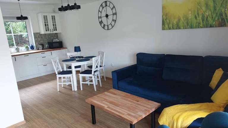Die Unterkunft DOM PIOTRUSIÓWKA NAD ZALEWEM KLIMKÓWKA bietet eine komfortable Villa mit Blick auf den Fluss und die Berge. Sie ist ausgestattet mit einer Gemeinschaftsküche und einem gemütlichen Wohnbereich. Für eine entspannte Atmosphäre sorgt eine Terrasse.