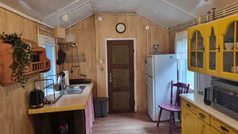 Das Ferienhaus umfasst ein Schlafzimmer und ein Wohnzimmer mit einer Klimaanlage. Es gibt eine voll ausgestattete Küchenzeile, die mit einem Kühlschrank und Wasserkocher ausgestattet ist. Das Badezimmer ist mit einer Dusche und einem Haartrockner versehen. Handtücher und Bettwäsche werden bereitgestellt.