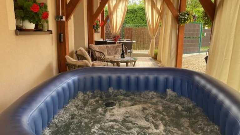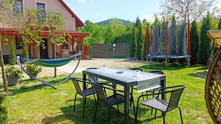 Die Ferienwohnung DomWakacyjny "Gajówka" besticht durch einen saisonalen Aussenpool sowie eine grosszügige Gartenlandschaft. Sie bietet eine heimelige Atmosphäre mit vielfältigen Annehmlichkeiten zur Entspannung und Erholung.