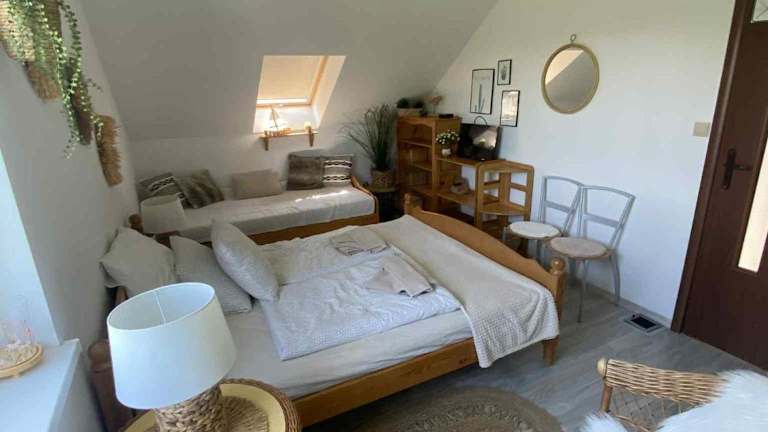Dom wakacyjny Pawelkowo ist ein einladendes Ferienhaus mit einem gemütlichen Garten, einer Gemeinschaftslounge und einer gut ausgestatteten Gemeinschaftsküche. Die Unterkunft bietet eine Terrasse, die einen schönen Blick auf den Garten ermöglicht. Für Gäste steht ein gratis Privatparkplatz sowie kostenloses Wi-Fi zur Verfügung.