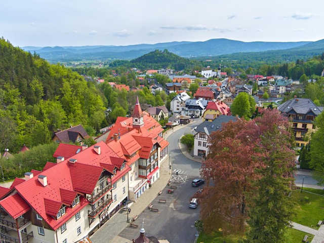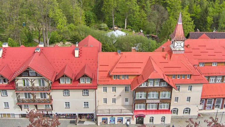 Das Hotel D W Mieszko liegt im beliebten Ferienort Krummhübel (Karpacz) im schönen Riesengebirge. Die Umgebung bietet zahlreiche Freizeitaktivitäten, darunter die Łomnica-Wasserfälle und die Skisprungschanze Orlinek, die beide in unmittelbarer Nähe von nur 100 Metern erreichbar sind.