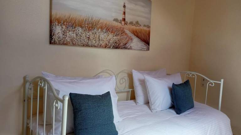 Die Ferienwohnung verfügt über zwei Schlafzimmer, ein Wohnzimmer und eine voll ausgestattete Küche mit Kühlschrank und Kaffeemaschine. Das Badezimmer ist mit einer Badewanne und einem Haartrockner ausgestattet. Die Zimmer sind klimatisiert und schallisoliert, und es werden Handtücher sowie Bettwäsche bereitgestellt.