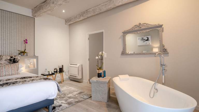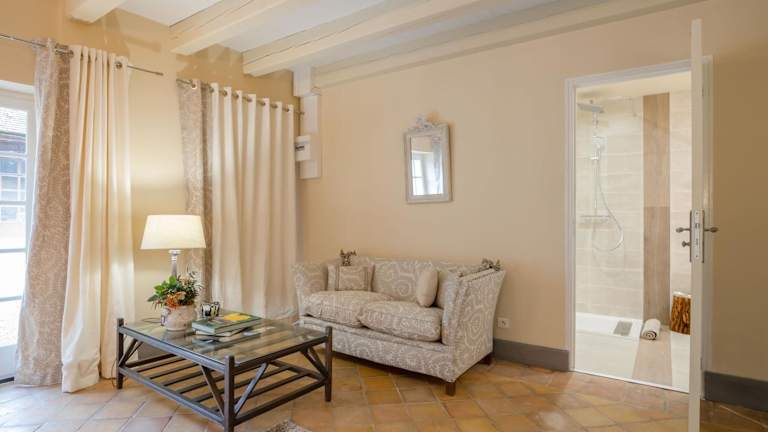 Die Zimmer im Domaine De L'Oiseau sind komfortabel und bieten einen angenehmen Aufenthalt. Jedes Zimmer verfügt über ein eigenes Bad mit Dusche, Haartrockner und Hausschuhen. Genießen Sie den Blick auf den Garten und entspannen Sie sich in Ihrem gemütlichen Zimmer.