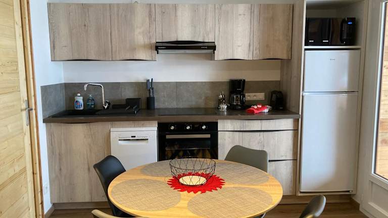 Die Unterkunft verfügt über eine voll ausgestattete Küche, welche die Zubereitung eigener Mahlzeiten ermöglicht. Zudem stehen eine Kaffeemaschine und ein Wasserkocher zur Verfügung.