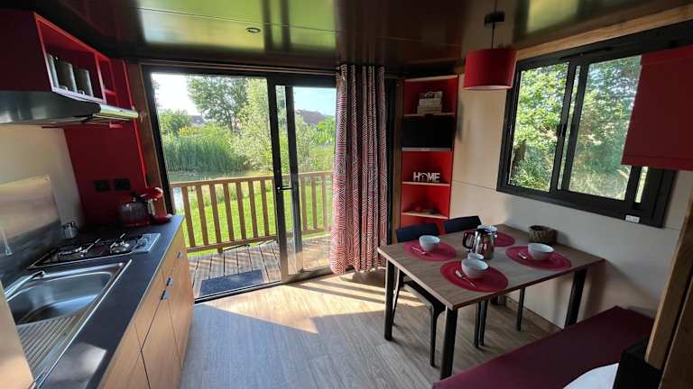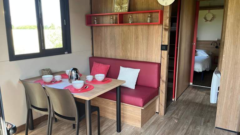 DOMAINE DES GALINACES ROULOTTE LA ROUSSETTE 2-4P ist ein Chalet, das eine klimatisierte Unterkunft mit einem Schlafzimmer und einem Badezimmer bietet. Zur Ausstattung gehören Bettwäsche und Handtücher, ein Flachbild-TV mit Kabelkanälen, ein Essbereich sowie eine voll ausgestattete Küche. Eine Terrasse mit Blick auf den Garten lädt zur Entspannung ein. Die Unterkunft bietet zudem einen Kinderspielplatz und einen Conciergeservice.