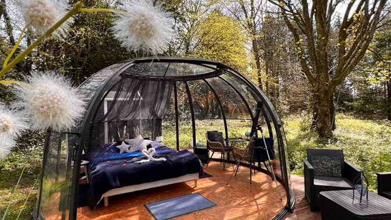 Das Dôme Atmo'sphère besticht durch seine heimelige Atmosphäre und bietet Gästen einen schönen Gartenblick sowie Zugang zu einem saisonalen Aussenpool. Es handelt sich um eine Zelt-Lodge, die eine besondere Erfahrung in der Natur verspricht. Die Unterkunft ist Nichtraucher und es sind keine Haustiere erlaubt.