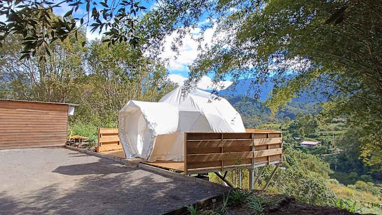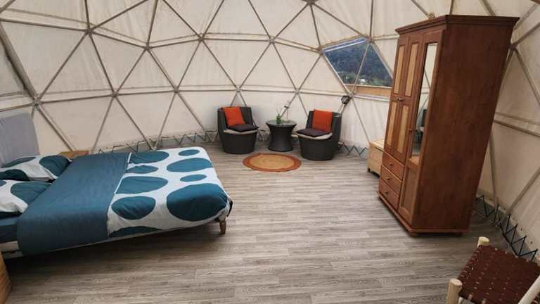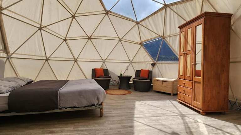 Die Unterkunft dôme insolite bietet eine heimelige Atmosphäre inmitten der Natur. Dank des Gartens und der Terrasse haben die Gäste die Möglichkeit, die frische Luft und die ruhige Umgebung zu geniessen. Eine Gemeinschaftsküche ist ebenfalls vorhanden, die eine praktische Option für die Zubereitung eigener Mahlzeiten darstellt.