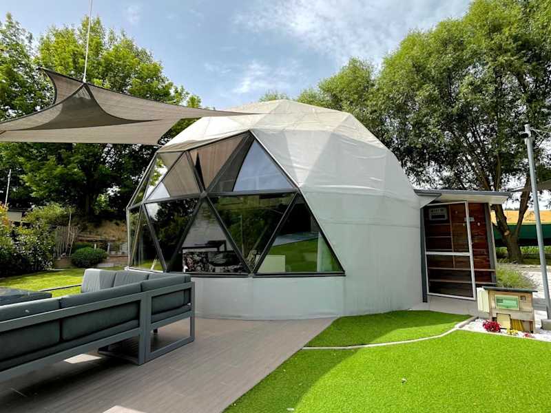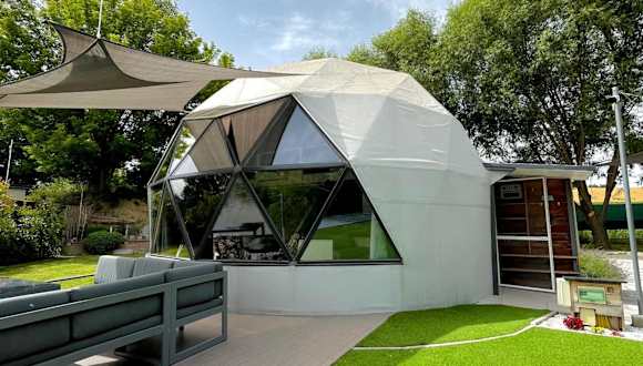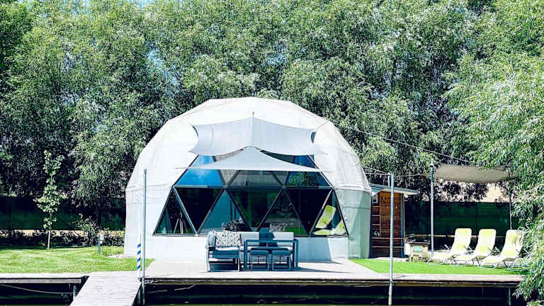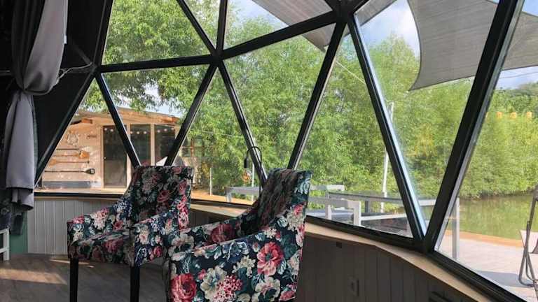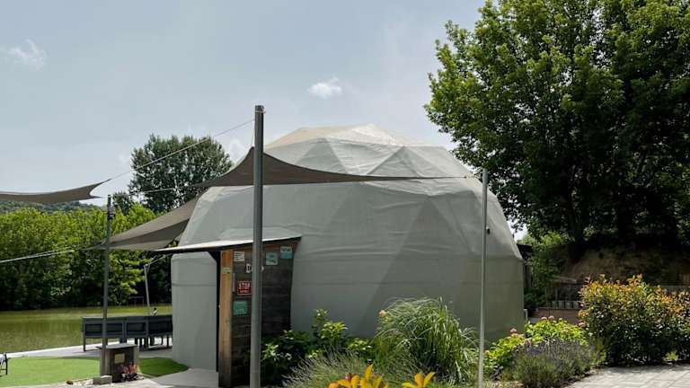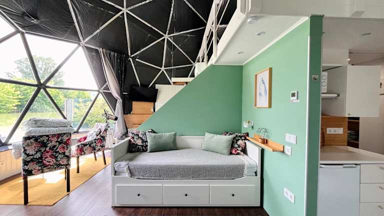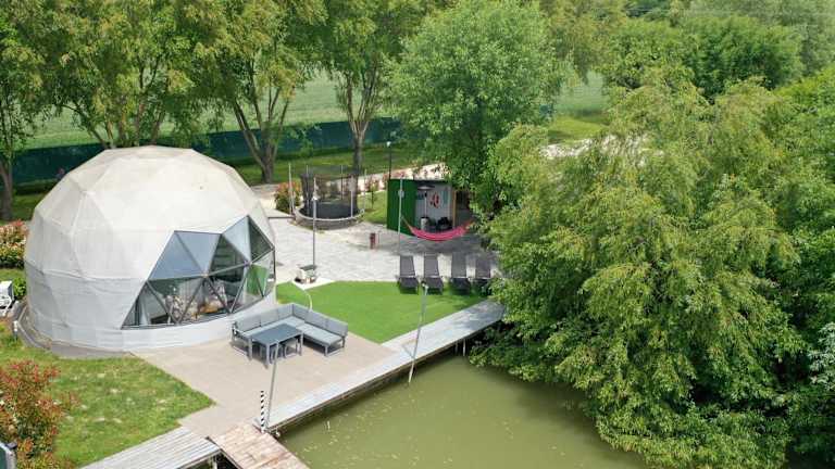 DOMEGLAMPING at FISHINGLAKE ist eine einzigartige Unterkunft mit einem Garten, einer Terrasse sowie einer Sauna. Die Unterkunft verfügt über kostenloses Wifi und kostenfreie Fahrräder für die Gäste.