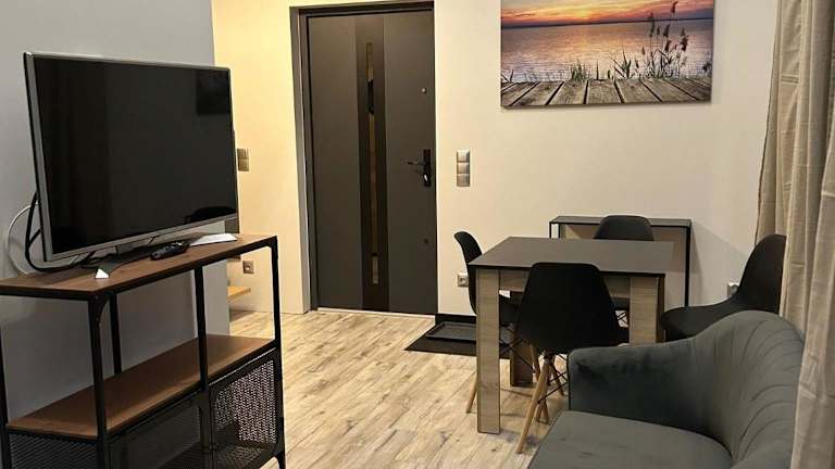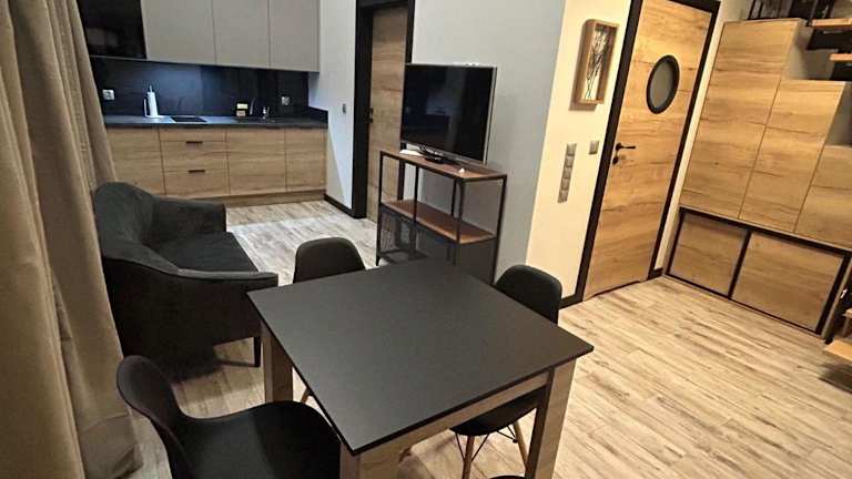 Domek Apartamenty Sun House bietet eine Ferienwohnung mit eigenem Pool, Garten und einem saisonalen Aussenpool. Zudem steht eine Terrasse zur Verfügung.