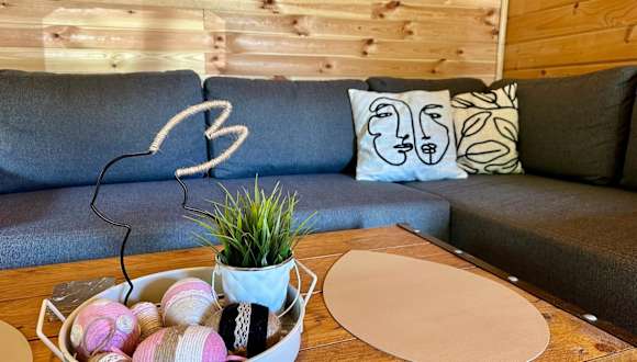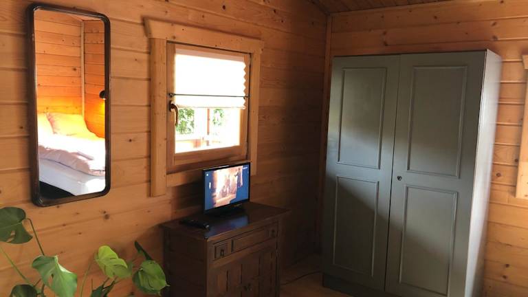 Das Ferienhaus verfügt über 1 Schlafzimmer, ein Wohnzimmer sowie eine gut ausgestattete Küchenzeile mit Kühlschrank und Herdplatte. Handtücher und Bettwäsche sind in der Unterkunft verfügbar. Eine Terrasse ergänzt die Bequemlichkeit der Einrichtung.