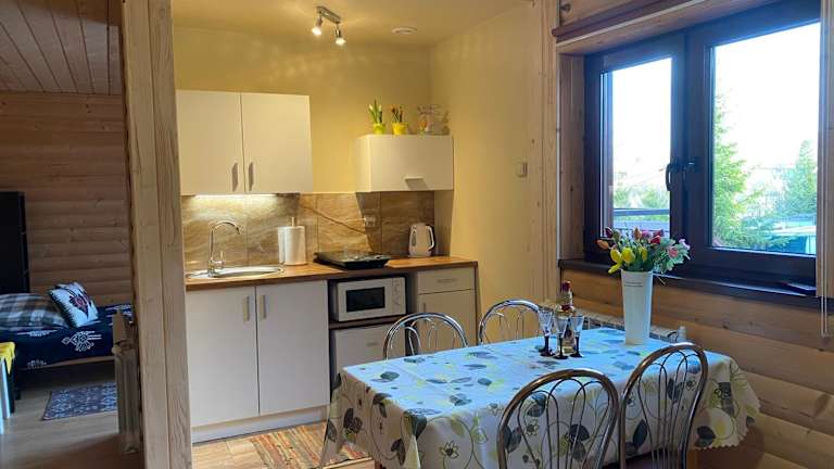 Domek Koniec Świata hat einen Garten, Grillmöglichkeiten und eine Gemeinschaftsküche, die für die Bequemlichkeit der Gäste zur Verfügung stehen. Kostenloses Wifi ist in der gesamten Unterkunft verfügbar. Einige Wohneinheiten bieten eine Terrasse oder einen Balkon mit Blick auf die Berge oder den Fluss.
