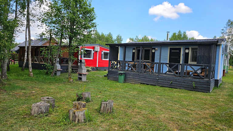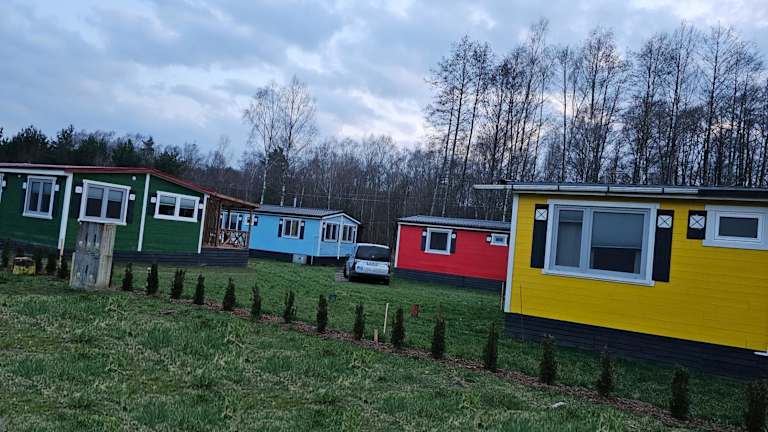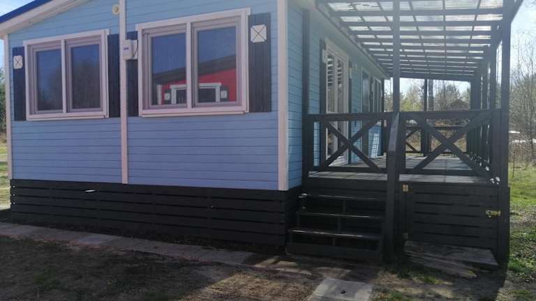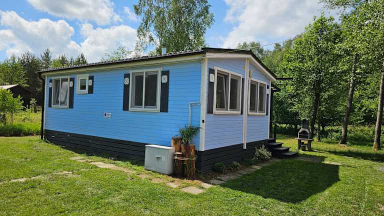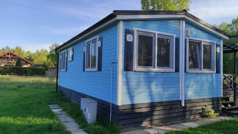 Domek letniskowy - niebieski całoroczny bietet eine heimelige Atmosphäre mit einem Aussenpool, einer Terrasse und einem Kinderspielplatz für Familien. Die Unterkunft ist für verschiedene Aktivitäten geeignet und hat ein Nichtraucherkonzept in allen Bereichen.