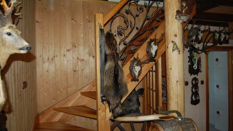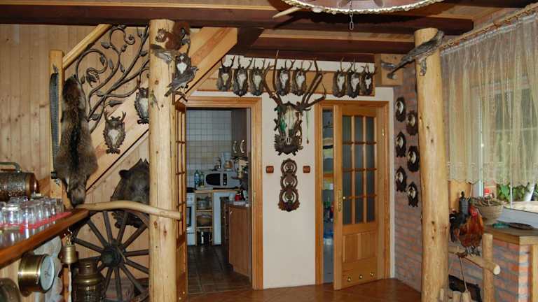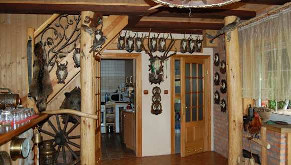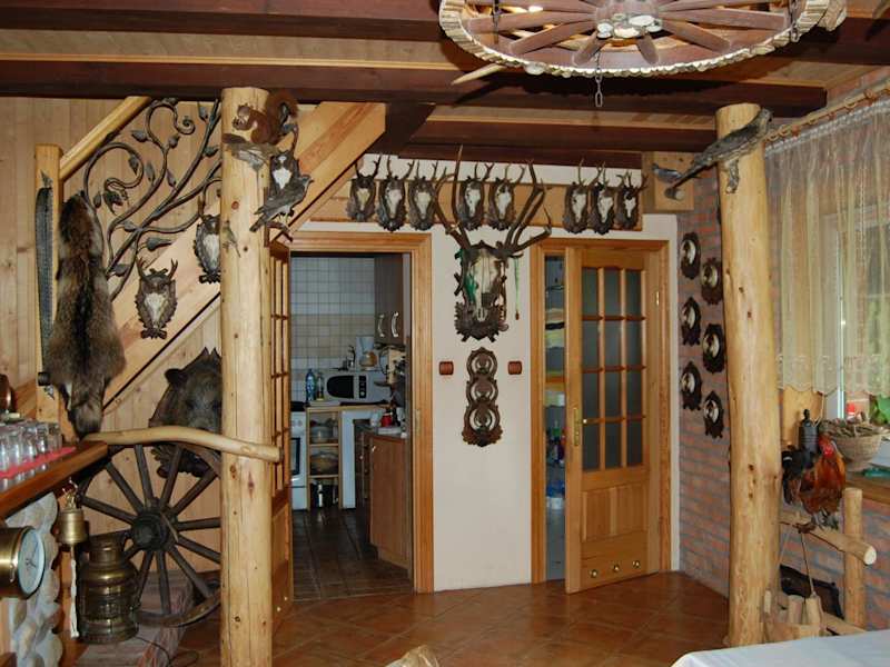 Domek myśliwski ist eine heimelige Lodge, die den Gästen eine rund um die Uhr besetzte Rezeption bietet. Die Lodge ist von einem Garten umgeben und verfügt über Grillmöglichkeiten sowie eine Terrasse mit Flussblick. Sie bietet auch eine Bar für die Gäste.