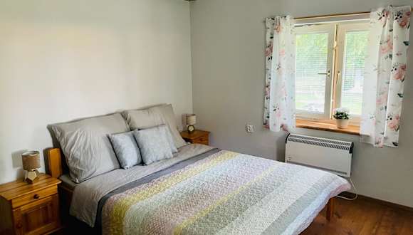 Das Ferienhaus verfügt über ein Schlafzimmer, ein Wohnzimmer, eine voll ausgestattete Küche mit Kühlschrank und Kaffeemaschine sowie ein Badezimmer mit Badewanne und Haartrockner. Handtücher und Bettwäsche werden bereitgestellt.
