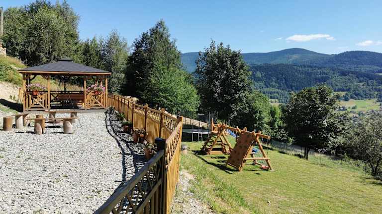 Das Domek na Niedźwiedziarce ist ein einladendes Ferienhaus, das über eine Terrasse und einen Balkon verfügt. Die Unterkunft bietet diverse Annehmlichkeiten, darunter einen Garten und Grillmöglichkeiten, sowie kostenloses Wifi und eine kostenlose Parkiermöglichkeit.