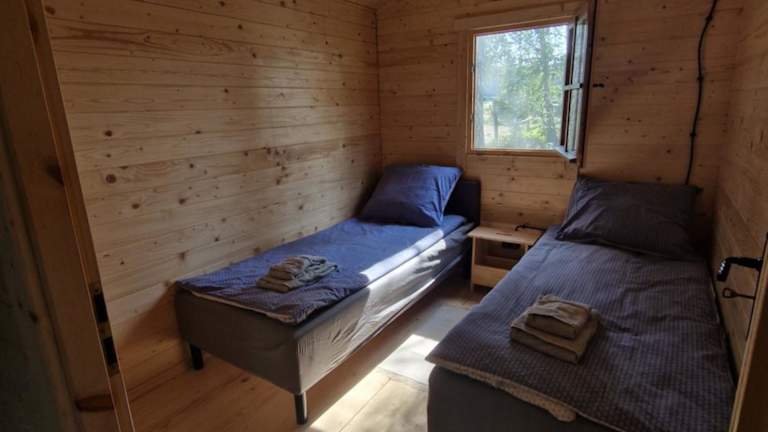 Das Ferienhaus besteht aus 2 Schlafzimmern, einem Wohnzimmer und einer voll ausgestatteten Küche mit Kühlschrank und Kaffeemaschine. Es gibt 1 Badezimmer mit Dusche. Handtücher und Bettwäsche werden bereitgestellt.