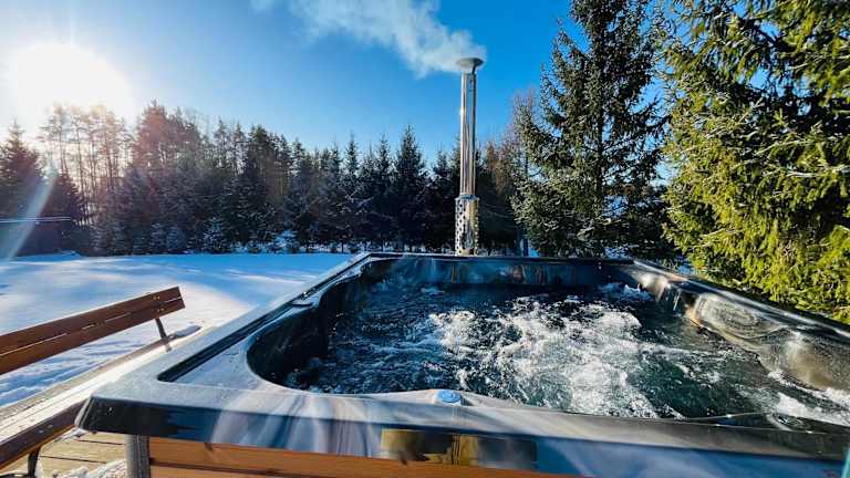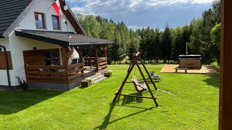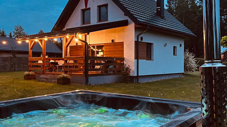 Das Ferienhaus Domek z kominkiem nad jeziorem z jacuzzi ogrodowym bietet eine gemütliche Atmosphäre mit einer Terrasse und Seeblick. Es handelt sich um eine Nichtraucherunterkunft, die von einem privaten Gastgeber geführt wird und eine kostenlose Privatparkiermöglichkeit sowie eine Gemeinschaftsküche zur Verfügung stellt.
