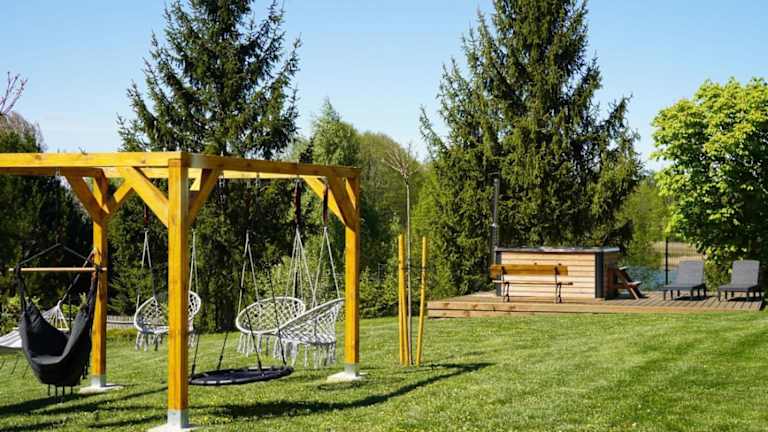 Die Unterkunft liegt ungefähr 34 km von Augustów-Urwald entfernt und bietet einen schönen Gartenblick sowie Zugang zu einem privaten Strand.