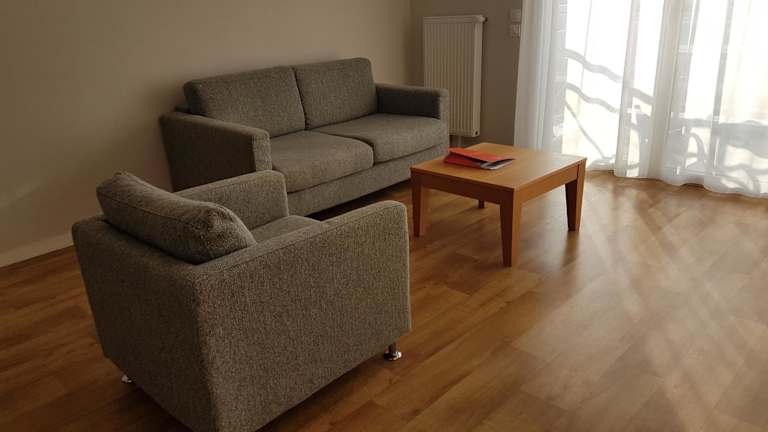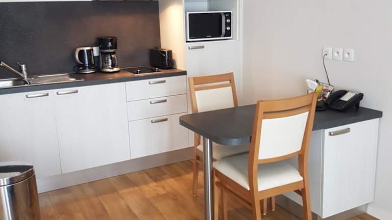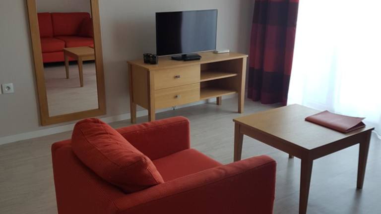 Die Apartments im Domitys Le Carrousel sind mit einem Balkon und einem Sitzbereich ausgestattet. Jedes Apartment verfügt über einen Essbereich mit Mikrowelle, Kühlschrank und Küchenutensilien. Im eigenen Bad finden Gäste einen Haartrockner und Bademäntel vor. Ein Sofa und die Bereitstellung von Bettwäsche sind ebenfalls vorhanden.