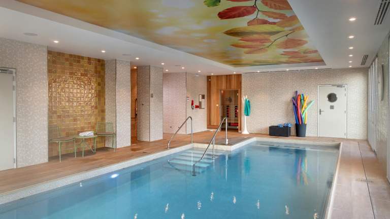 Es stehen diverse Freizeitmöglichkeiten zur Verfügung, darunter ein Innenpool und Fitnessangebote. Zudem gibt es einen Garten, eine Terrasse und eine Gemeinschaftslounge zum Entspannen.