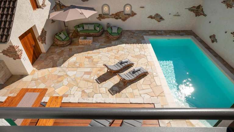 Für sportliche Aktivitäten stehen diverse Möglichkeiten zur Verfügung. Gäste können sich am saisonalen Aussenpool entspannen oder die Umgebung zum Wandern und Velofahren erkunden. Es bestehen auch Optionen für Tennis, Angeln und Tauchen gegen zusätzliche Gebühren in der Nähe der Unterkunft.