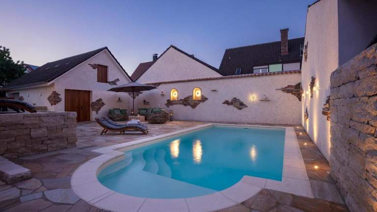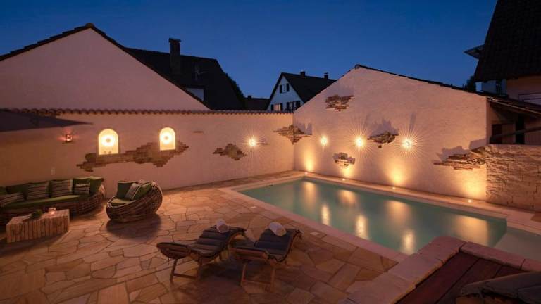 Das Domizil-Kaiserstuhl ist ein charmantes Ferienhaus mit Blick auf den Garten. Es bietet eine einladende Atmosphäre mit einer Veranda und einem saisonalen Aussenpool. Die Unterkunft wird von einem privaten Gastgeber geführt und hat strenge Richtlinien, um eine ruhige und entspannte Atmosphäre für die Gäste zu gewährleisten.