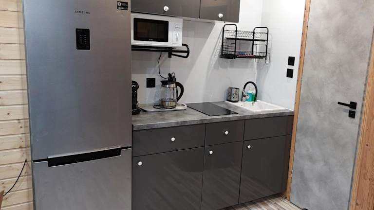 Jede Wohneinheit im Domki Kaper Rewa verfügt über eine Terrasse und eine gut ausgestattete Küchenzeile mit Kühlschrank, Mikrowelle, Herdplatte und Wasserkocher. Der Essbereich und der Flachbild-TV ergänzen die Ausstattung. Die privaten Badezimmer sind mit einer Dusche und Haartrockner ausgestattet.