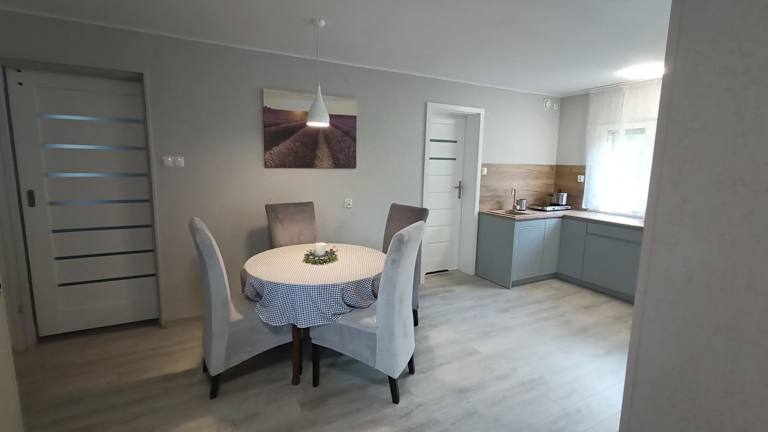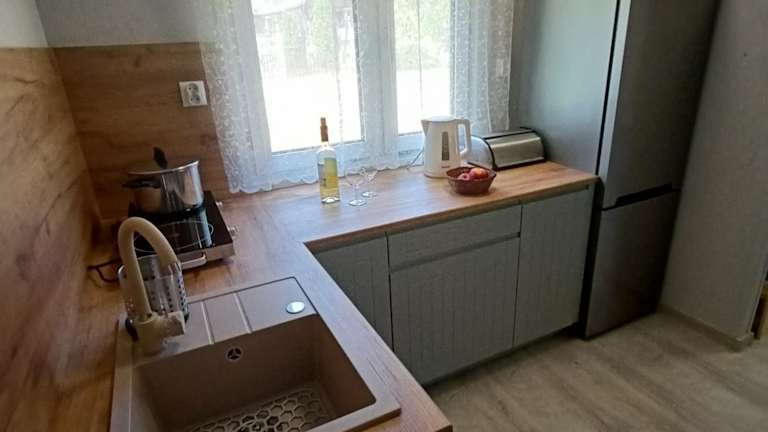 Domki Letniskowe Cztery Pory Roku bietet eine heimelige Atmosphäre mit kostenfreiem Privatparkplatz. Die Unterkunft verfügt über eine Terrasse mit Gartenblick und eine gut ausgestattete Küchenzeile.