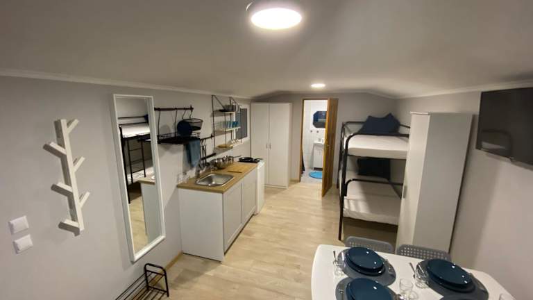 Die Wohneinheiten verfügen über einen Essbereich, einen Flachbild-TV und ein eigenes Badezimmer mit einer Dusche. Die Ausstattung sorgt für eine heimelige Atmosphäre und bietet den Gästen alle notwendigen Annehmlichkeiten.