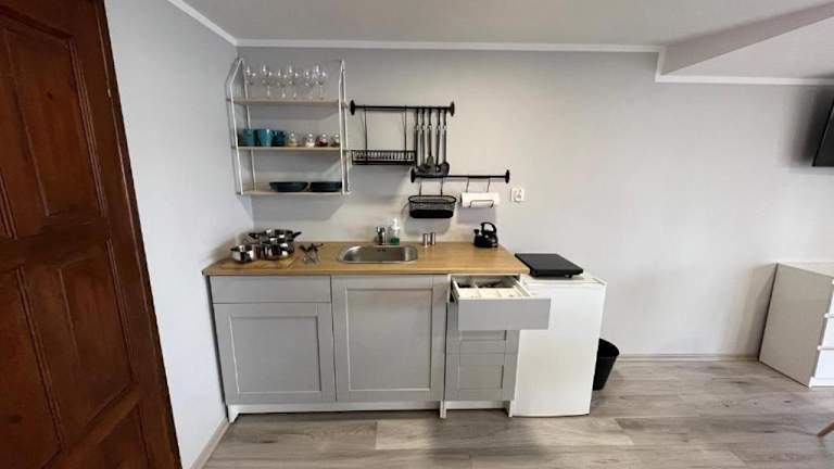 Jede Wohneinheit ist mit einer Küchenzeile ausgestattet, die einen Kühlschrank, eine Herdplatte und einen Wasserkocher umfasst. Ein Grill steht den Gästen zur Verfügung.