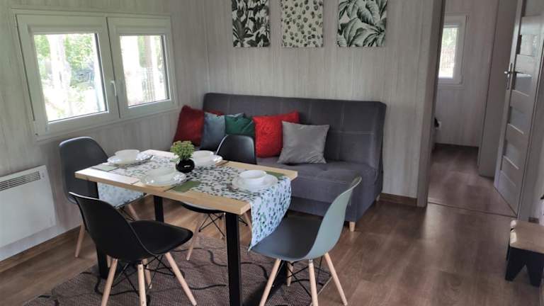 Das Ferienhaus ist ausgestattet mit zwei Schlafzimmern, einer Küchenzeile mit Kühlschrank und Mikrowelle, einem Flachbild-TV, einem Sitzbereich sowie einem Badezimmer mit Dusche. Handtücher und Bettwäsche werden zur Verfügung gestellt.