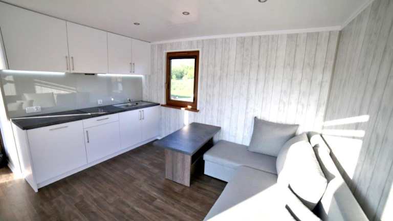 Domki przy plaży bietet gemütliche Wohneinheiten mit eigener Terrasse, die einen Blick auf den See offenbart. Eine heimelige Atmosphäre wird durch die Ausstattung mit einer Küchenzeile, inklusive Kühlschrank und Herdplatte, unterstrichen. Die Unterkunft stellt zudem Grillmöglichkeiten bereit und bietet eine Nichtraucherumgebung in allen Bereichen.