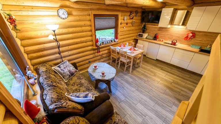 Die Chalets im DOMKI SWOJSKIE CHATKI bieten einen gemütlichen und komfortablen Rückzugsort. Jedes Chalet verfügt über eine Terrasse mit herrlichem Bergblick. Im Inneren finden Sie einen geräumigen Wohnbereich, einen Flachbild-Sat-TV und eine voll ausgestattete Küche mit Kühlschrank, Mikrowelle, Kochfeld, Kaffeemaschine und Wasserkocher. Das eigene Bad ist mit einer Dusche und einem Haartrockner ausgestattet.