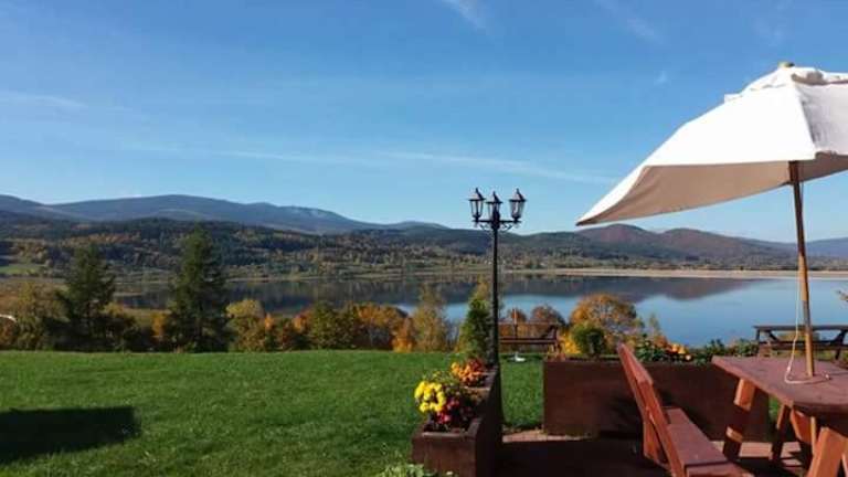 Domki Złoty Widok bietet Übernachtungsmöglichkeiten mit einem heimeligen Garten sowie einem Restaurant und einer Bar. Die Unterkunft zeichnet sich durch ihre gemütliche Atmosphäre und ihren atemberaubenden Blick auf die Umgebung aus.