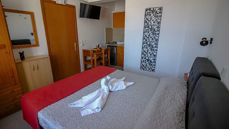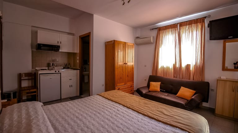 Die Studios sind mit einer Klimaanlage ausgestattet und verfügen über eine voll ausgestattete Küche, einen Flachbild-TV sowie ein eigenes Badezimmer mit Dusche, kostenlosen Pflegeprodukten und einem Haartrockner. Einige Wohneinheiten besitzen eine Terrasse und/oder einen Balkon mit Blick auf das Meer.