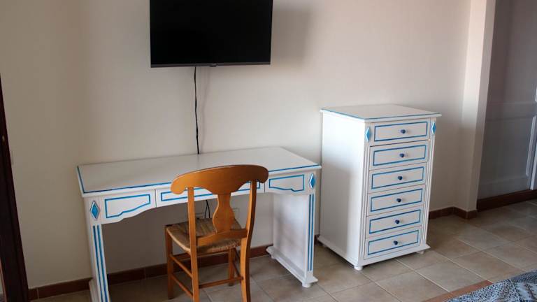 Die Ferienwohnung besteht aus einem Schlafzimmer, einem Wohnzimmer, einer voll ausgestatteten Küche mit Kühlschrank und Kaffeemaschine sowie einem Badezimmer mit Bidet und Dusche. Zur Ausstattung gehören Klimaanlage, Handtücher und Bettwäsche.
