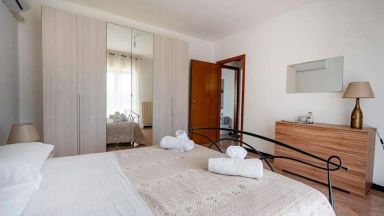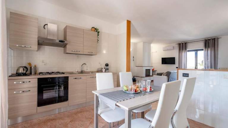 Die Ferienwohnung umfasst 3 Schlafzimmer und ein gemütliches Wohnzimmer. Die voll ausgestattete Küche verfügt über einen Kühlschrank und eine Kaffeemaschine. Ein Badezimmer mit Bidet und Dusche ist ebenfalls vorhanden. Handtücher und Bettwäsche werden bereitgestellt.