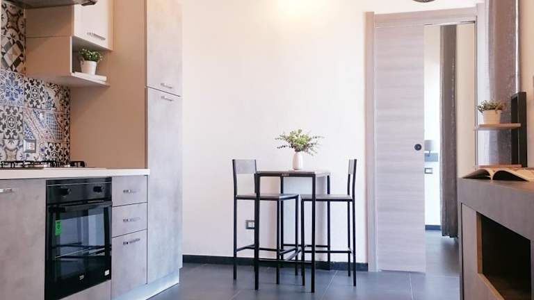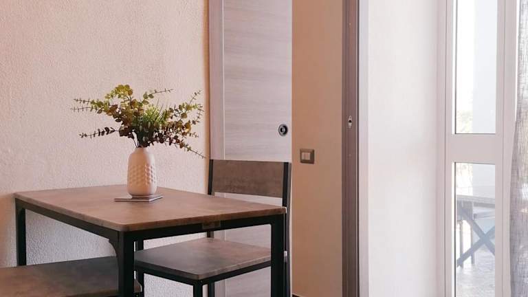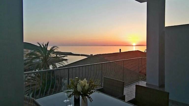 Die DOMUS con vista mare - JR02 bietet einen Balkon und eine klimatisierte Unterkunft mit einer voll ausgestatteten Küchenzeile. Die Unterkunft ist heimelig und bietet einen Essbereich sowie eine Terrasse mit Meerblick.