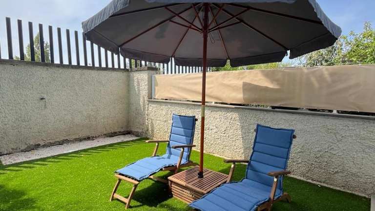 Die Ferienwohnung umfasst 1 Schlafzimmer, ein Wohnzimmer und 1 Badezimmer mit Bidet und Dusche. Die Ausstattung ist praktisch und bietet Bequemlichkeit für längere Aufenthalte.