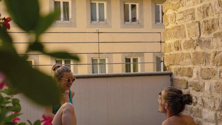 Die Zimmer sind klimatisiert und verfügen über ein Kingsize-Bett oder ein Sofabett. Ausgestattet sind sie mit einem Safe, einer Minibar, einer Kochnische mit Tee-/Kaffeemaschine, einer Hosenpresse sowie einem eigenen Badezimmer mit Dusche und Haartrockner. Nächtigung auf einer Terrasse ist möglich und die Zimmereinheiten sind mit Bettwäsche und Handtüchern ausgestattet. Rollstuhlgerechte Zimmer sind verfügbar.