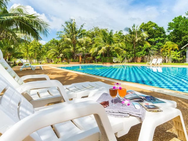 Eine Oase der Zufriedenheit für Familien, Paare, Singles und Gruppen. Das Resort wird Sie mit seiner grosszügigen Gartenanlage, den grossen Schwimmbädern für Erwachsene und Kinder und den fantastisch eingerichteten Unterkünften begeistern. Die Gebäude sind aus gealterten Ziegeln und tropischem Hartholz gebaut, dies gibt dem Resort und seinen Unterkünften eine einzigartige wohlfühl Atmosphäre. Das Doo Dee Boutique Resort befindet sich in der unmittelbaren Umgebung (350 m) des neuen Zentrums von Ao Nang, dem «Landmark», mit seinen zahlreichen Restaurants, Geschäften und dem Nachtmarkt. Der nächstgelegene Strand, Nopparat Thara, ist nur 500 Meter entfernt. Mit einer bis zu 1000/300 Mbps schnellen WiFi Verbindung bestens geeignet für Internet-Nomaden. Haustiere erlaubt