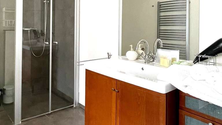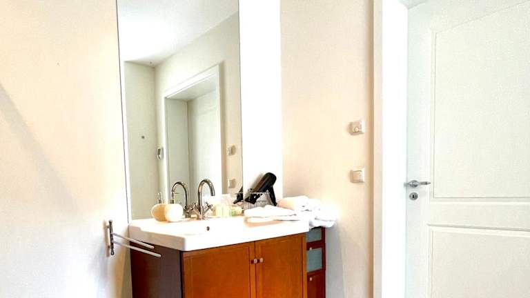 Die Ferienwohnung umfasst 1 Schlafzimmer und 1 Badezimmer, welches mit einer Dusche und einem Haartrockner ausgestattet ist. Handtücher und Bettwäsche werden bereitgestellt.