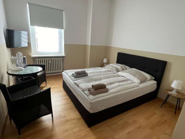Die Unterkunft Doppelzimmer mit Bad-TV- 9 bietet Übernachtungsmöglichkeiten in Nichtraucherzimmern. Gäste können eine Gemeinschaftslounge nutzen und profitieren von kostenlosem Wifi in der gesamten Unterkunft sowie von einer kostenlosen Parkiermöglichkeit für ihre Fahrzeuge.