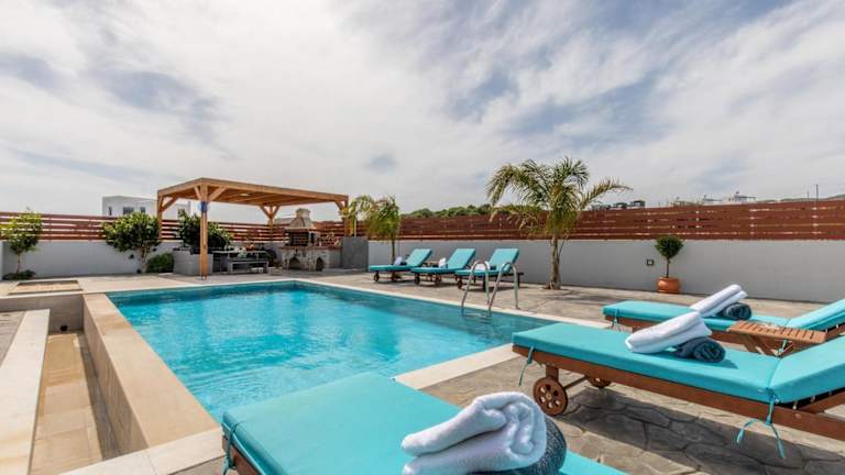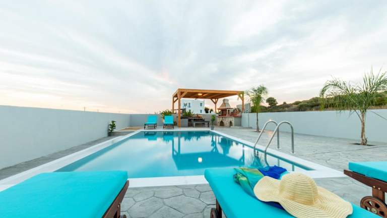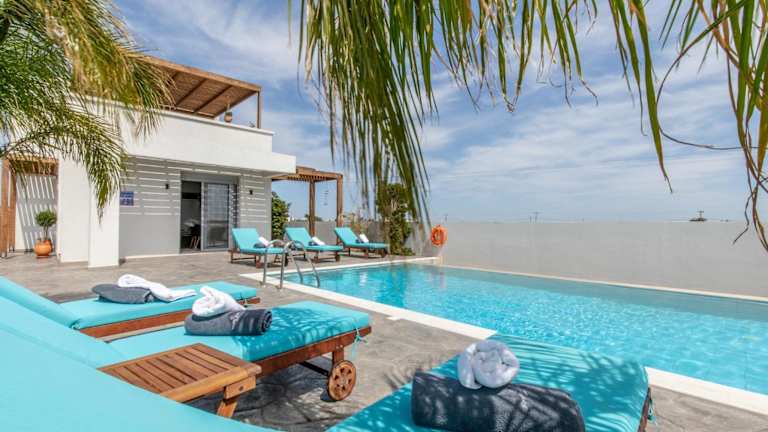 Die Dorieus Villa bietet Unterkunftsmöglichkeiten in 3 Schlafzimmern sowie 3 Badezimmern. Die Zimmer sind mit Bettwäsche und Handtüchern ausgestattet. Ein Flachbild-TV mit Satellitenkanälen und ein Essbereich stehen ebenfalls zur Verfügung. Von der Terrasse aus geniessen die Gäste den Blick auf das Meer.