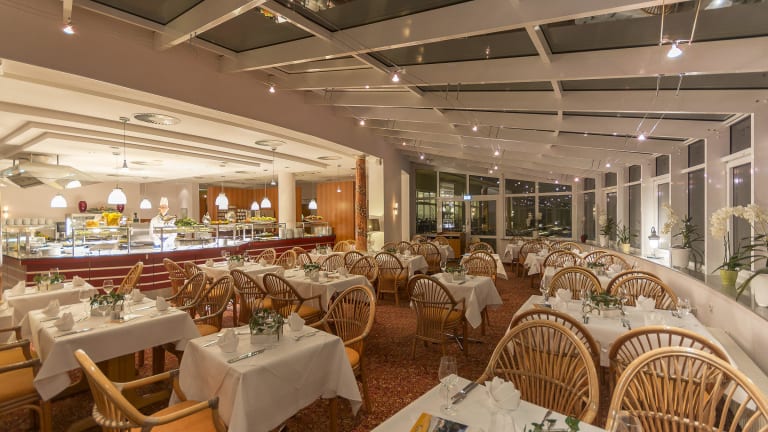 Restaurant „Bernstein“ Täglich von 07.00 bis 11.30 Uhr begrüßen wir Sie im Restaurant „Bernstein“ zum ausgiebigen Langschläfer-Frühstück. Knusprige Brötchen, duftender Kaffee, ein frisch bereitetes Spiegelei, leckerer Joghurt ... – das reichhaltige kalt-warme Buffet wird Sie begeistern. Der ideale Start in einen gelungenen Urlaubstag! Stilvoll Speisen – ob A la carte, beim Dinner for two oder vom umfangreichen Halbpensionsbuffet rund um die Showküche – das Restaurant „Bernstein“ ist täglich von 17.30 bis 22.00 Uhr die richtige Adresse. Es erwartet Sie ein breit gefächertes Kulinarium mit Streifzügen durch die nationale wie internationale Küche. Für eine passende Weinempfehlung steht Ihnen unser Serviceteam jederzeit gern zur Verfügung. Bar & Brasserie “Sundowner” Täglich ab 12.00 Uhr bis open end erwartet Sie neben der Hotellobby unsere gemütliche „Sundowner“-Bar. Ob preiswertes Mittagsgericht, aromatische Kaffeespezialitäten, verführerischer Kuchen, leckeres Eis oder Salate und deftige Happen zum Abend – für Ihr leibliches Wohl wird stets bestens gesorgt. Neben preisgekrönten nationalen wie internationalen Cocktails lässt die umfangreiche Getränkekarte keine Wünsche offen. Aktuelle Sport-Events in geselliger Runde erleben – unsere Großleinwand macht´s möglich. Mittwoch- und Samstagabend* mit Musik zum Tanzen und Träumen!